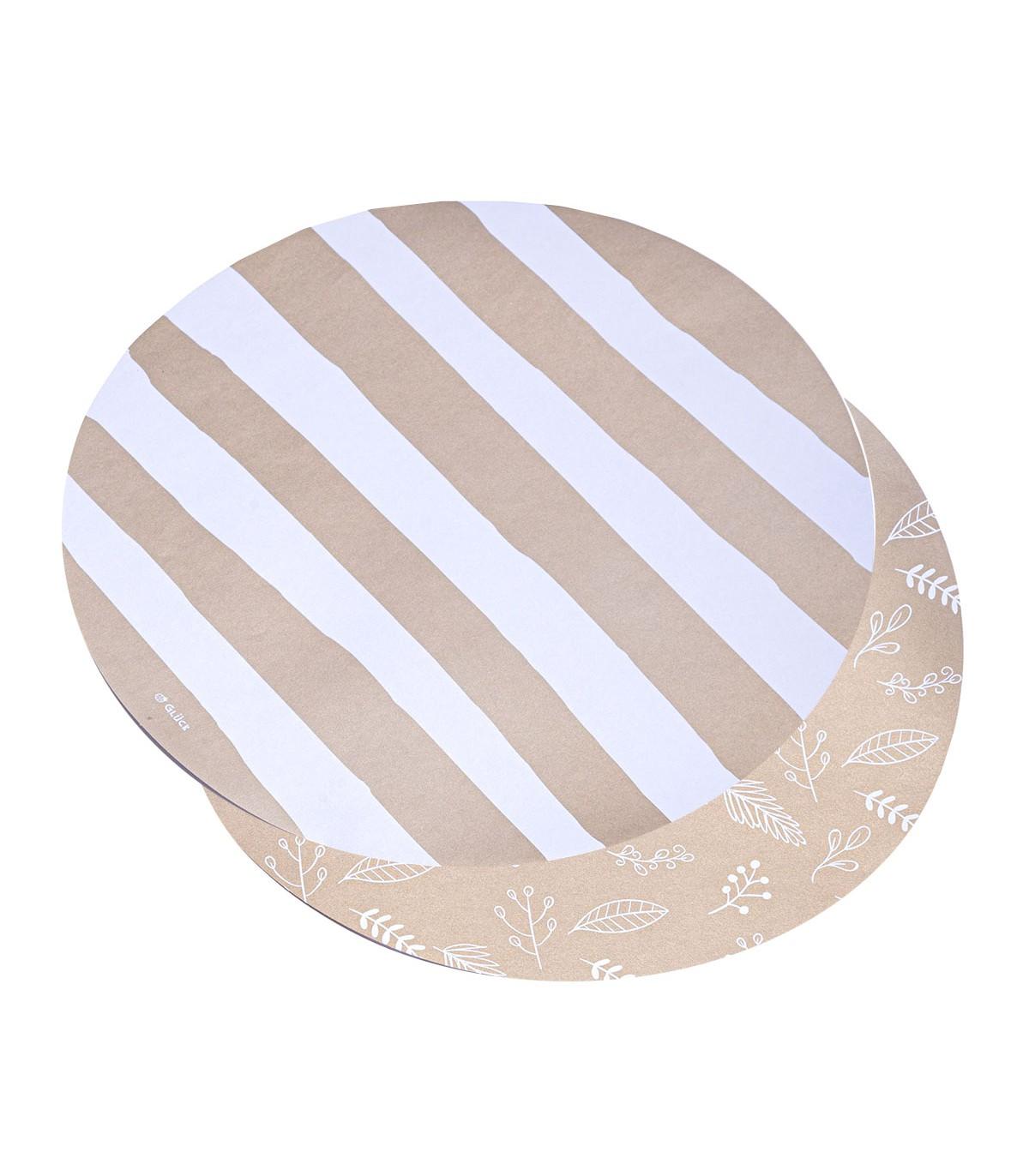 12 Paquetes de 10 Platos de Sitio Rayas y Hojas Doradas